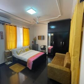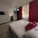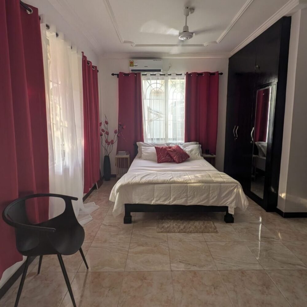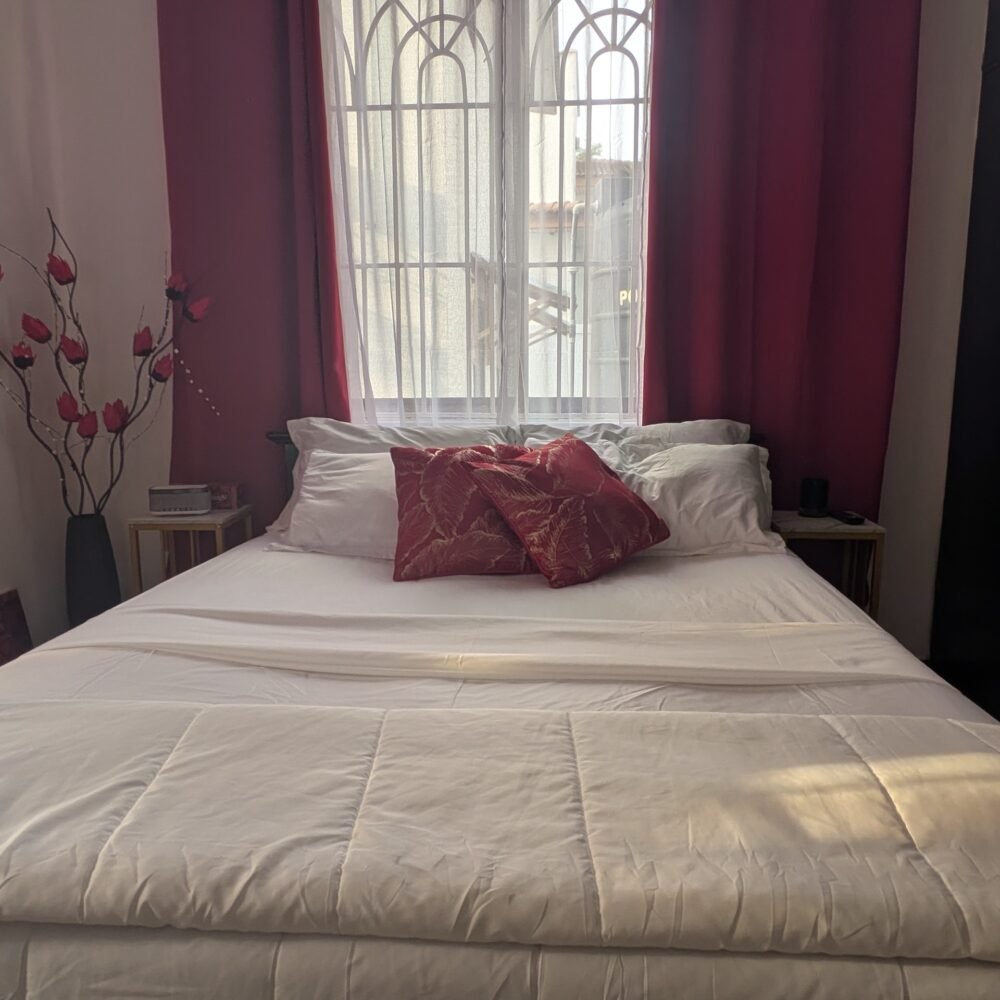 The Red Room is a ground-level Double designed for guests who want comfort, ease, and a steady place to return to after a full day in Accra. Step onto your private patio for fresh air and a quiet moment, then settle back into a space that carries Nteasee House’s Afrofuturistic signature—where ancestral beauty and modern comfort meet in bold, intentional design.